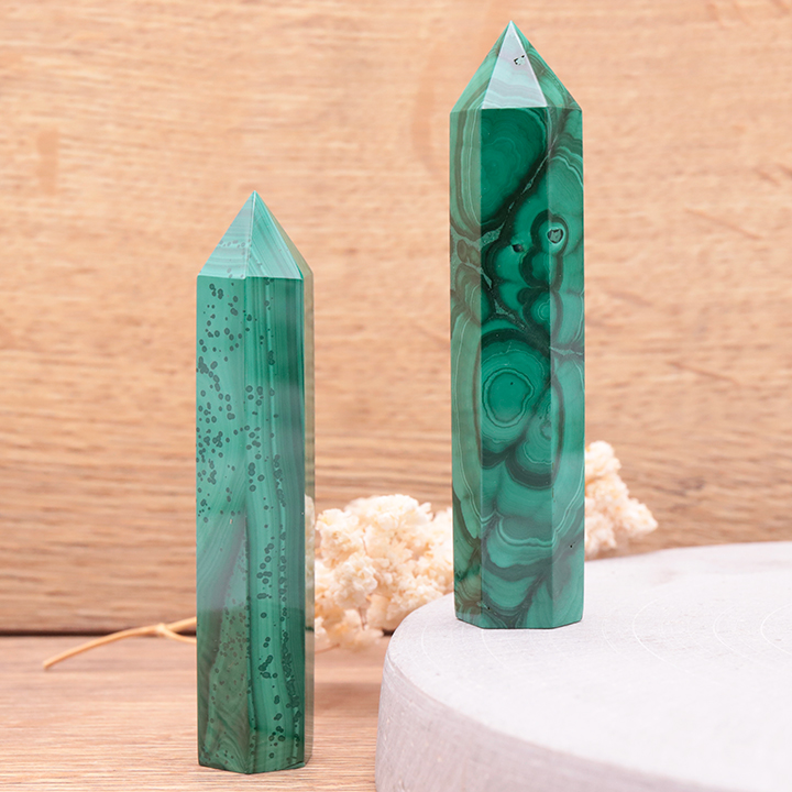 Découvrez notre gamme de malachites sélectionnées, taillées ou brutes, pensées pour accompagner les parcours de transformation et enrichir votre offre énergétique et symbolique