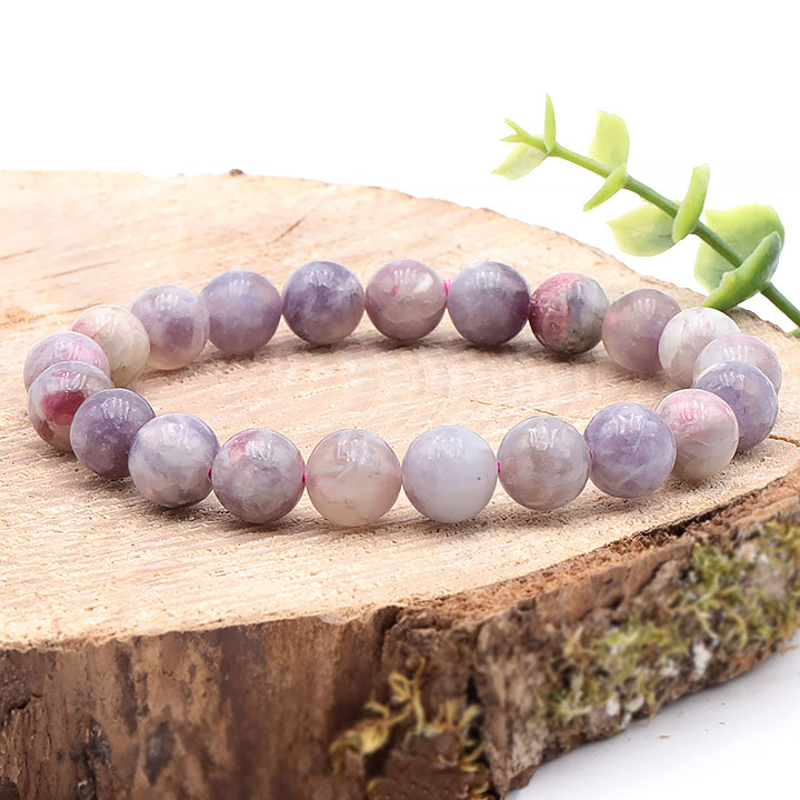 Braccialetto di sfere di tormalina rosa da 10 mm su eudialite A