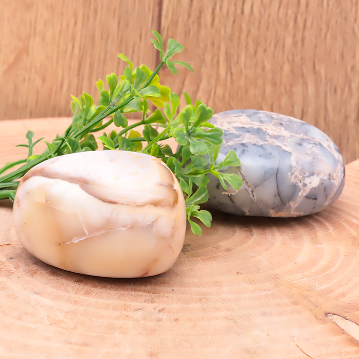 Ingrosso in Agata Bianca – Purezza e Equilibrio Interiore L'agata bianca è una pietra calmante e equilibrante, simbolo di purezza e armonia. Molto utilizzata in litoterapia, aiuta a calmare le emozioni, chiarire i pensieri e favorire un duraturo senso di serenità.