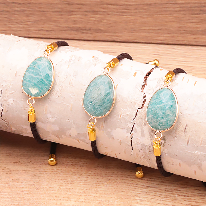 Bracciale con cordino regolabile amazzonite Perù A (1 pezzo)