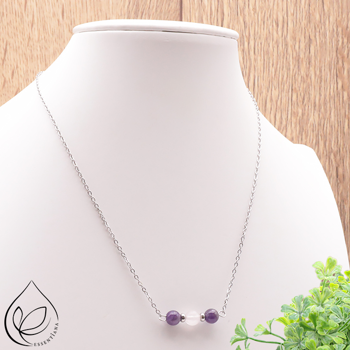 Collier Térélia argentato ametista, quarzo rosa A