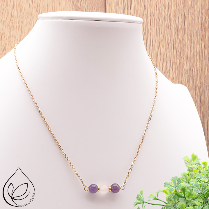 Collier Térélia dorato ametista, quarzo rosa A