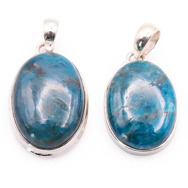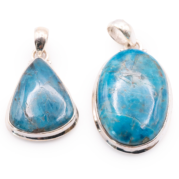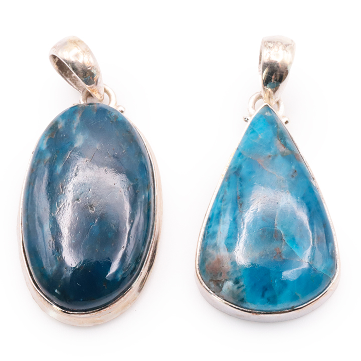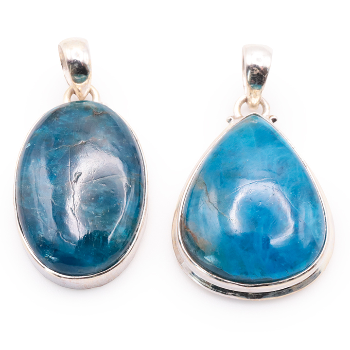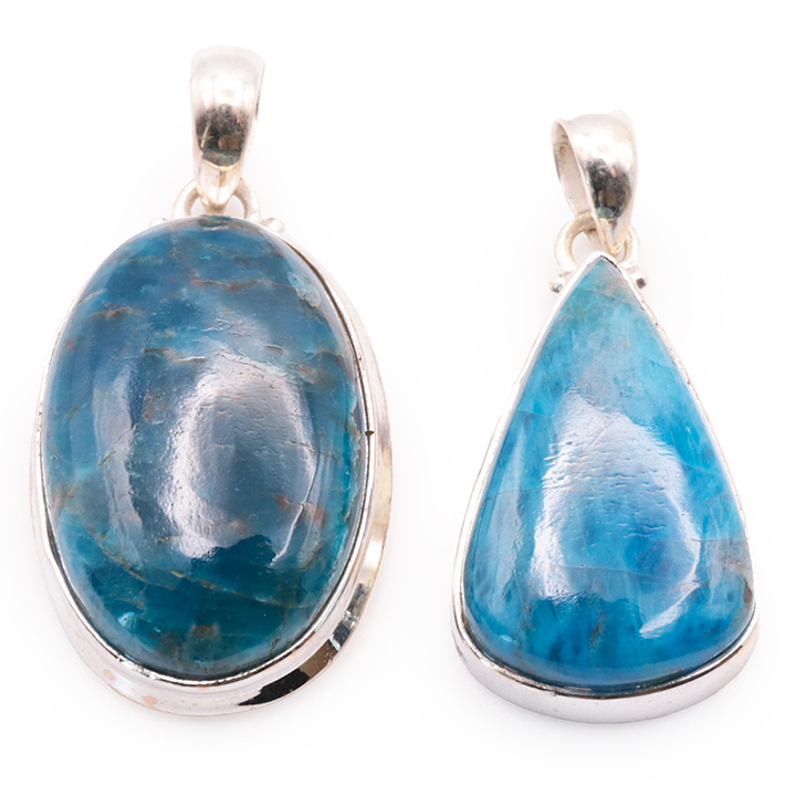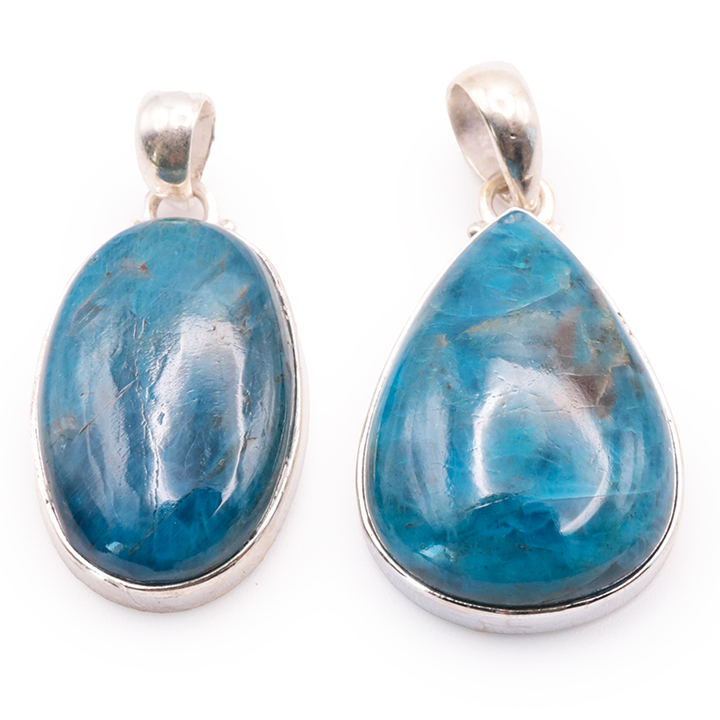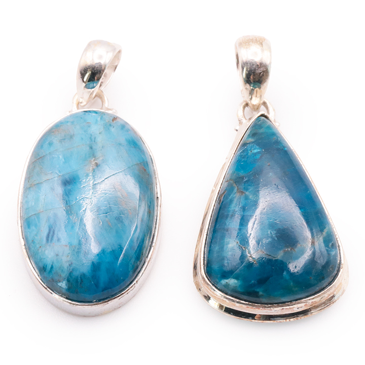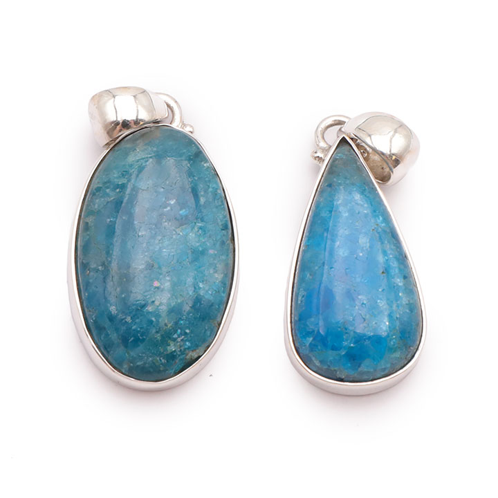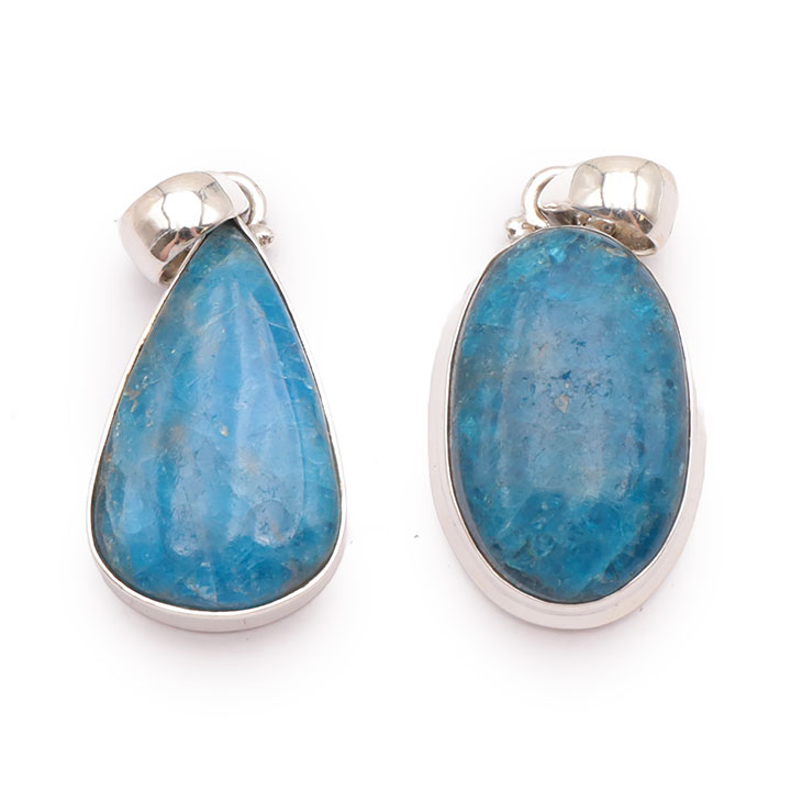 Ciondolo argento 925 apatite blu AA+ N°1677 (set di 2 pezzi) 21,85g