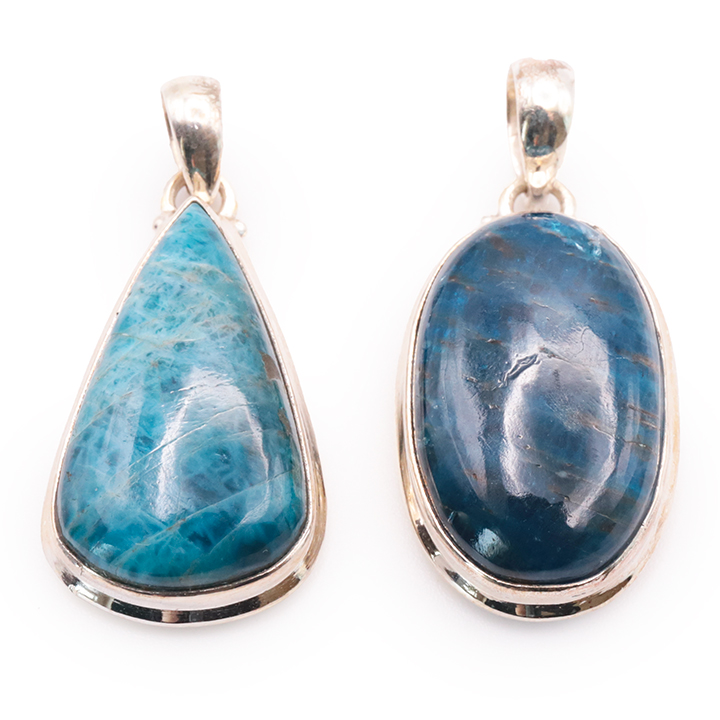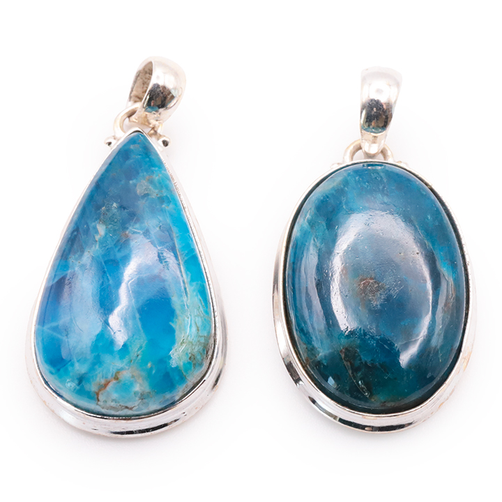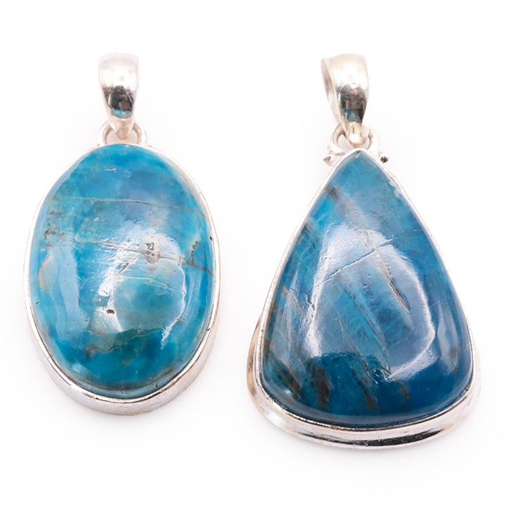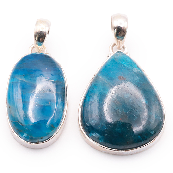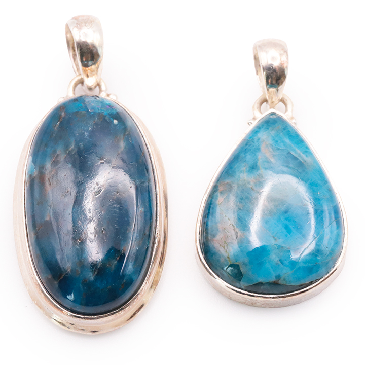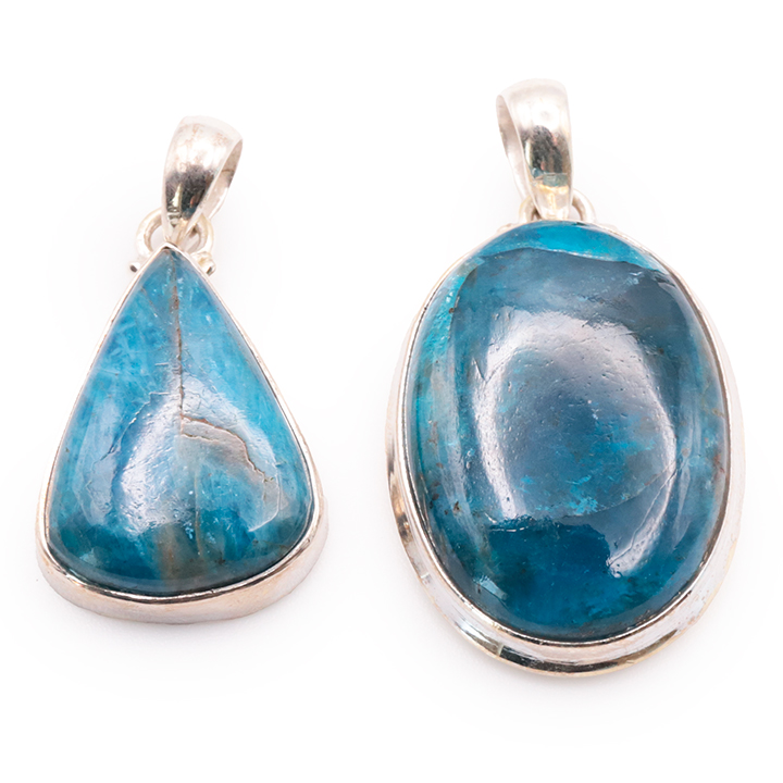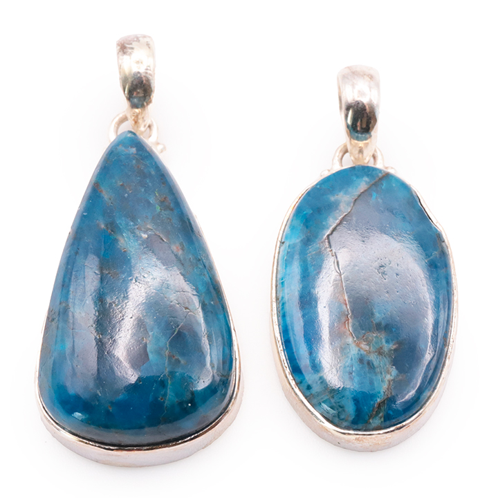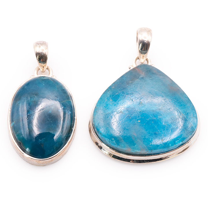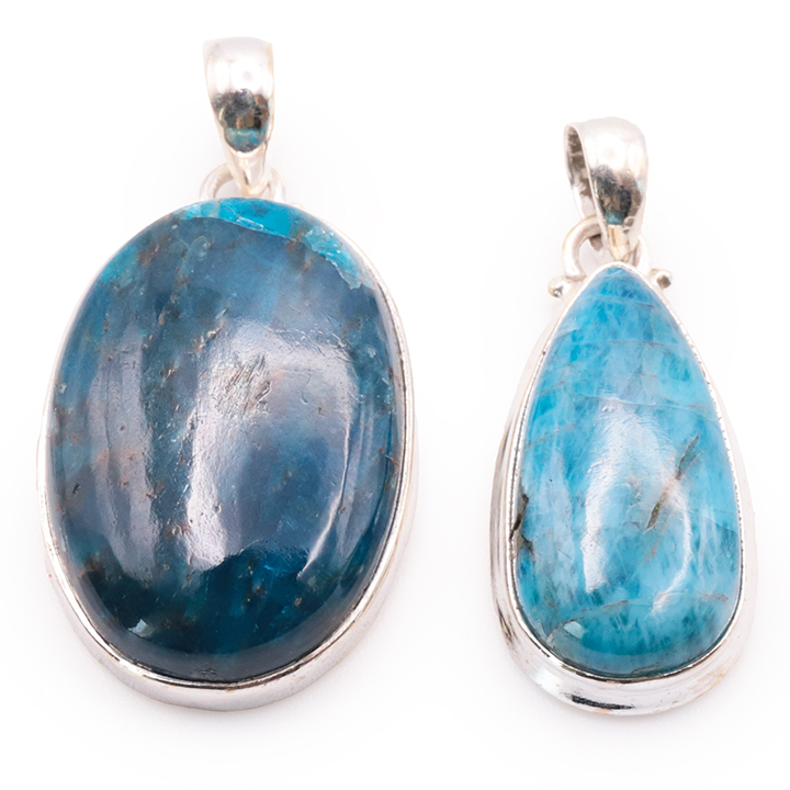 Ciondolo argento 925 apatite blu AA+ N°1677 (set di 2 pezzi) 21,85g