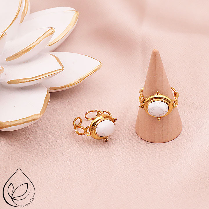 Anello Médina dorato howlite bianco A
