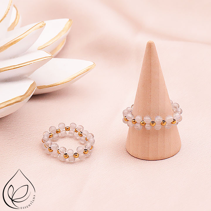 Anello Azélys dorato quarzo rosa AB