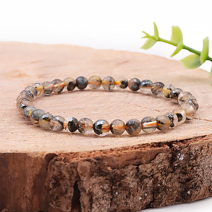 Bracciale a sfera 04mm cristallo di rocca rutilo ematite AAA (04,5-05,5mm)