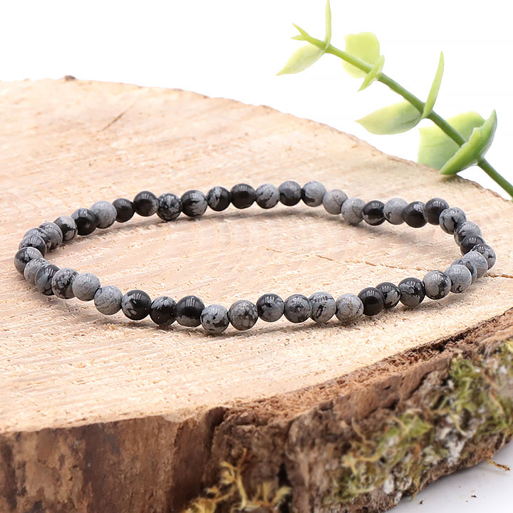 Bracciale a sfera in ossidiana fiocco di neve 04mm AB