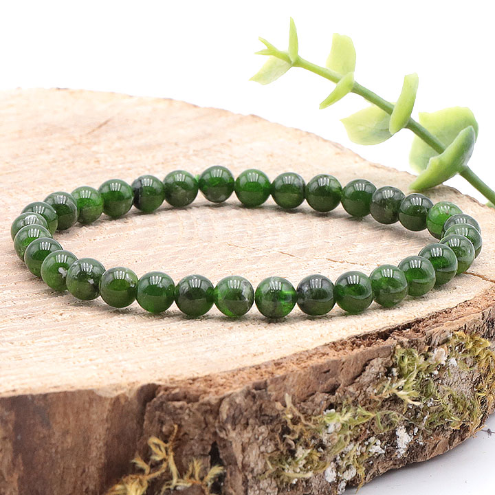 Bracciale a palline 06mm diopside verde su matrice AA (06,5-07,5mm)