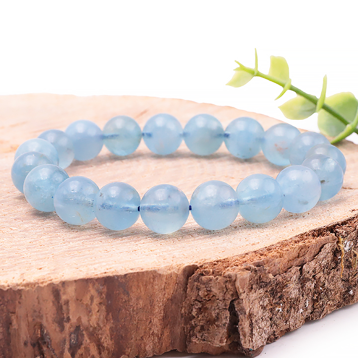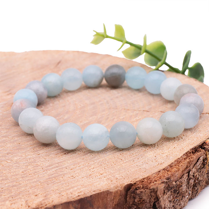 Bracciale di sfere acquamarina 10mm Namibia AA
