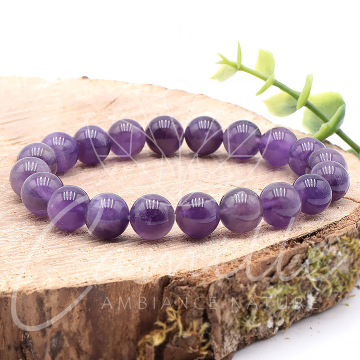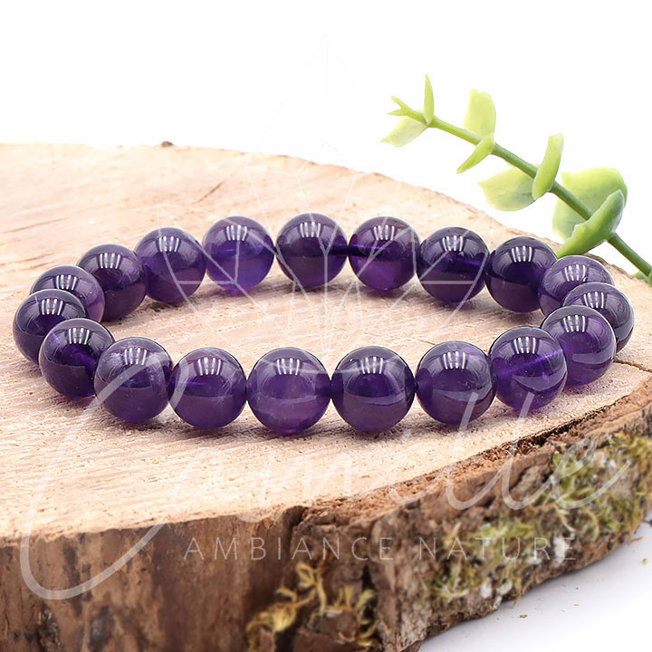 Bracciale di sfere in ametista da 10 mm Uruguay A+