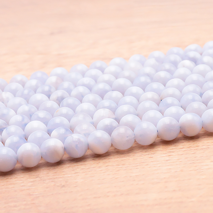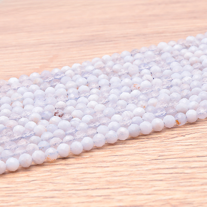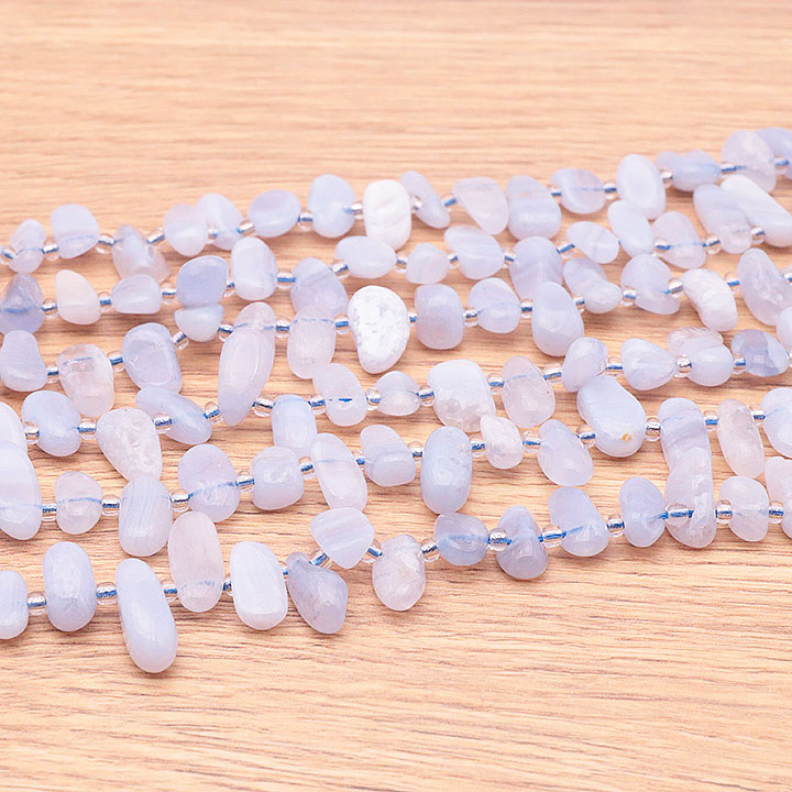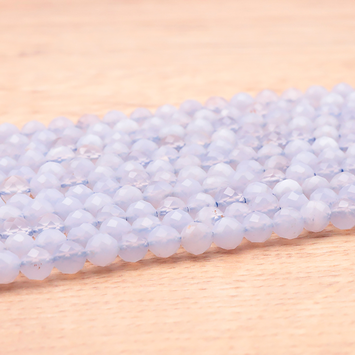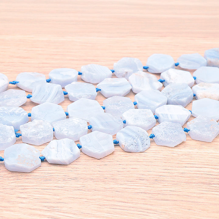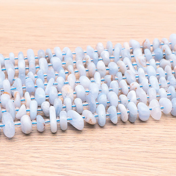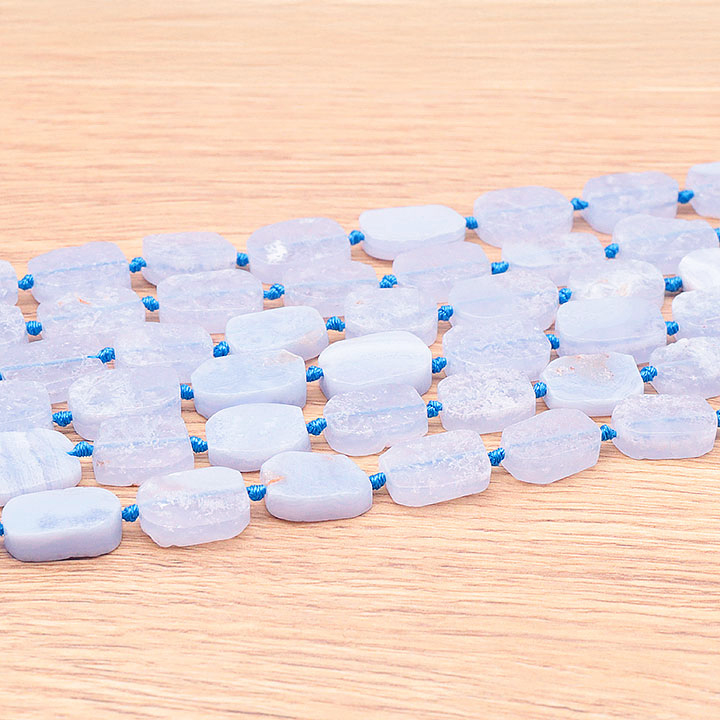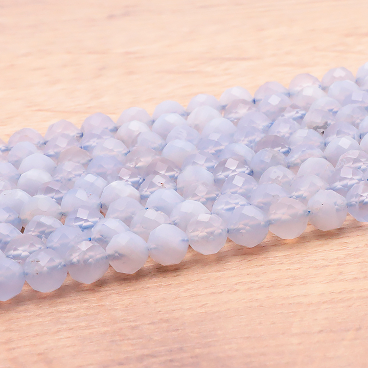 Braccialetti e pendenti in Calcedonio blu. Perle sfaccettate e pietre levigate.