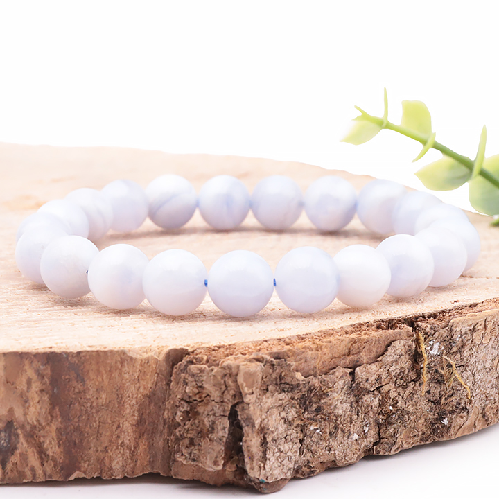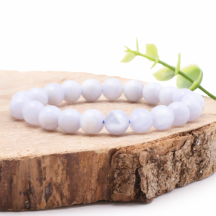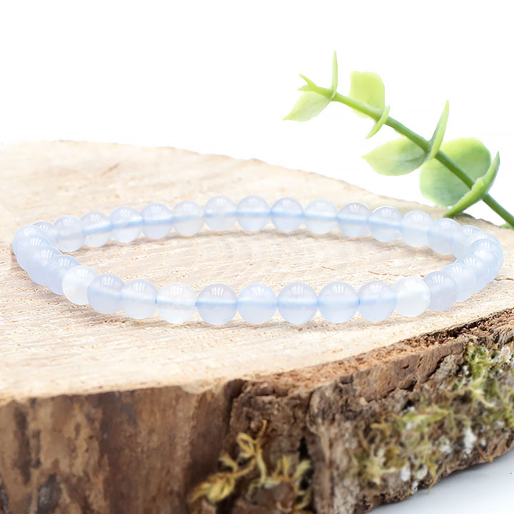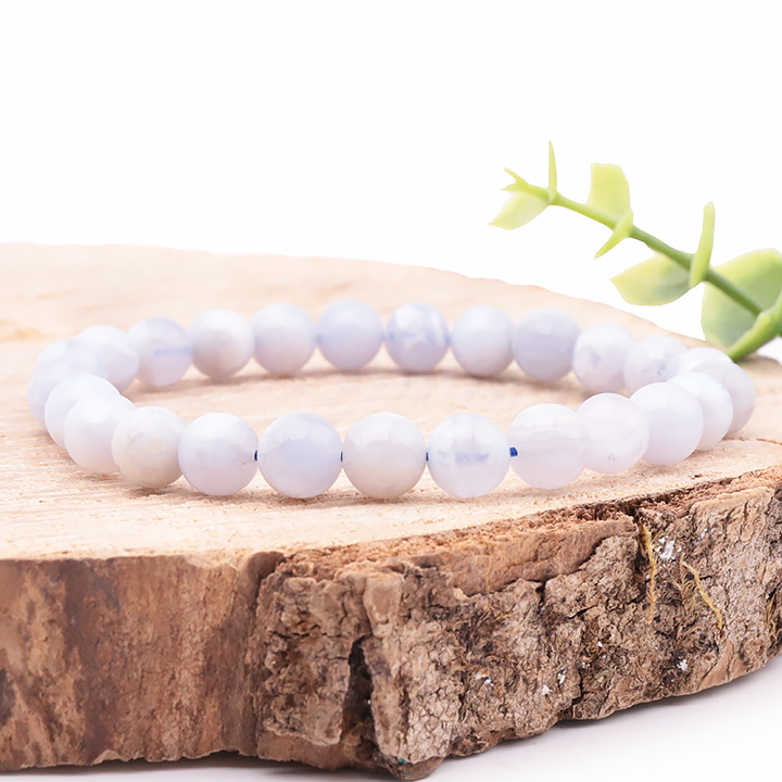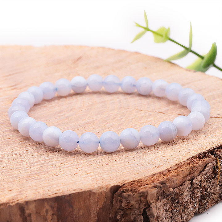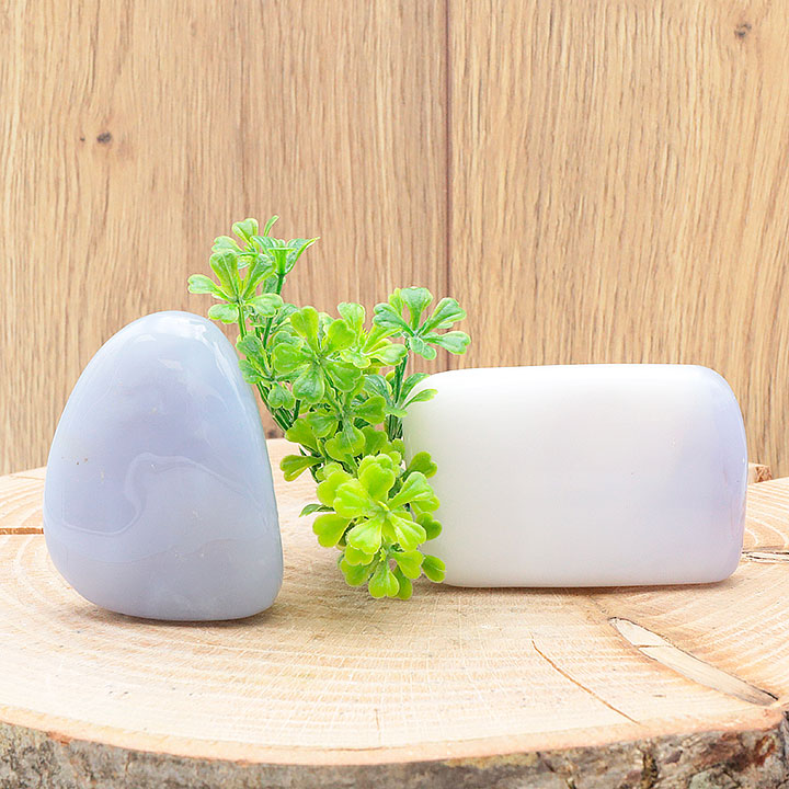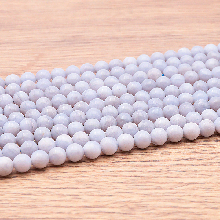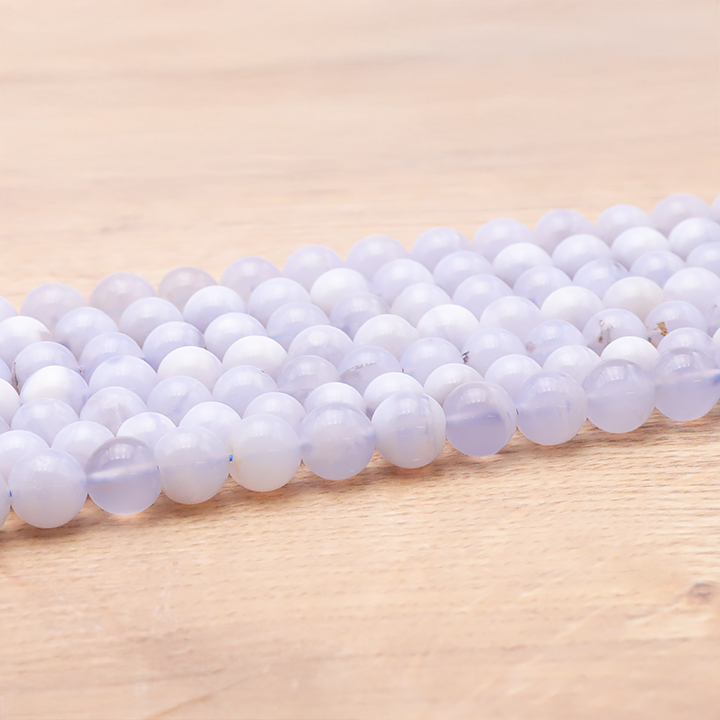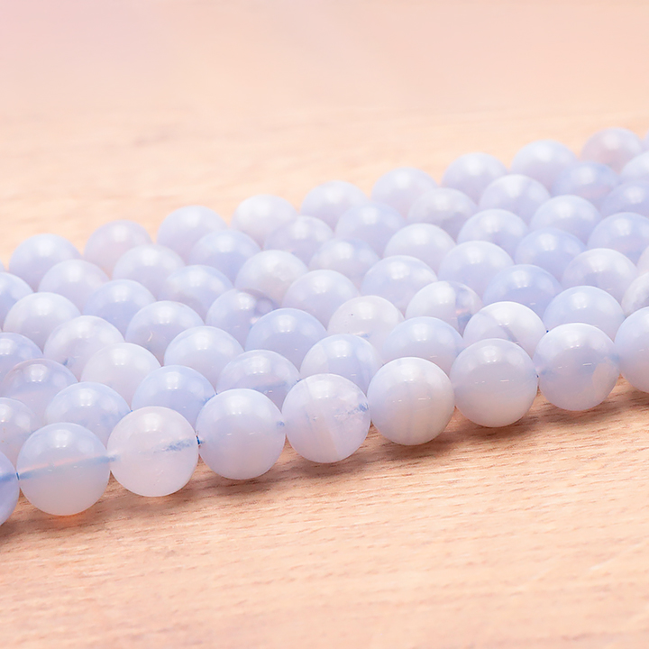 Braccialetti e pendenti in Calcedonio blu. Perle sfaccettate e pietre levigate.