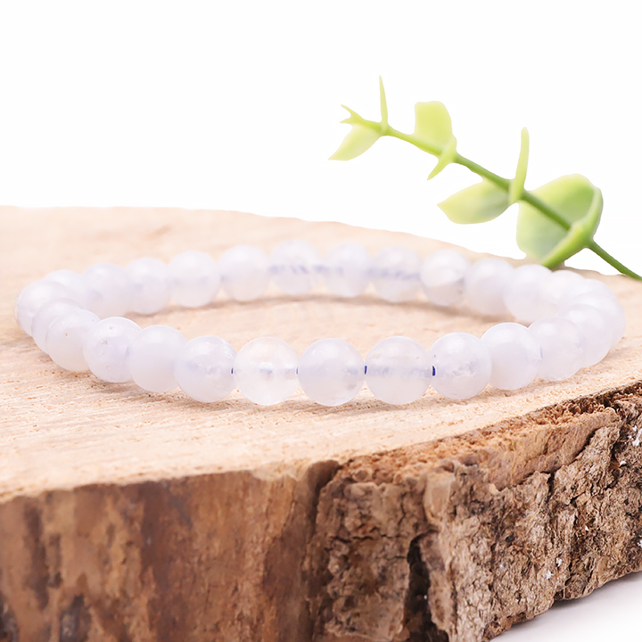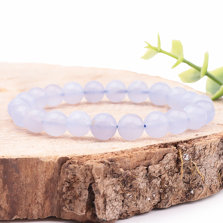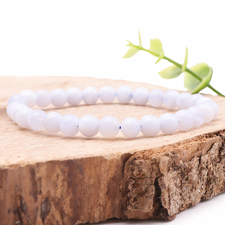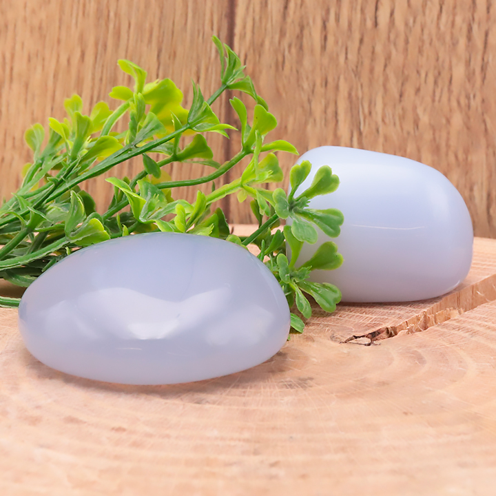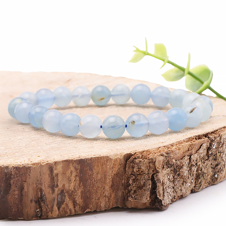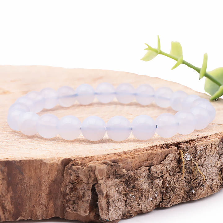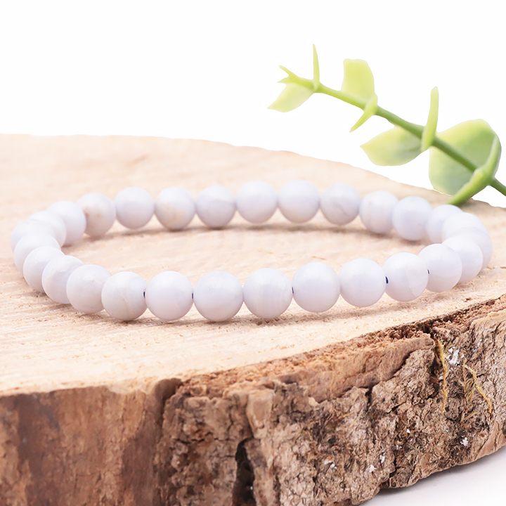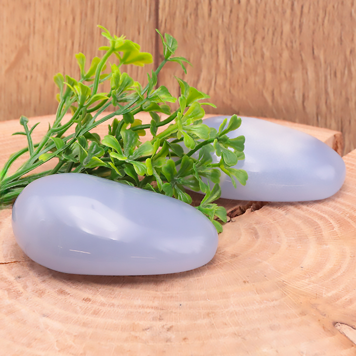 Braccialetti e pendenti in Calcedonio blu. Perle sfaccettate e pietre levigate.