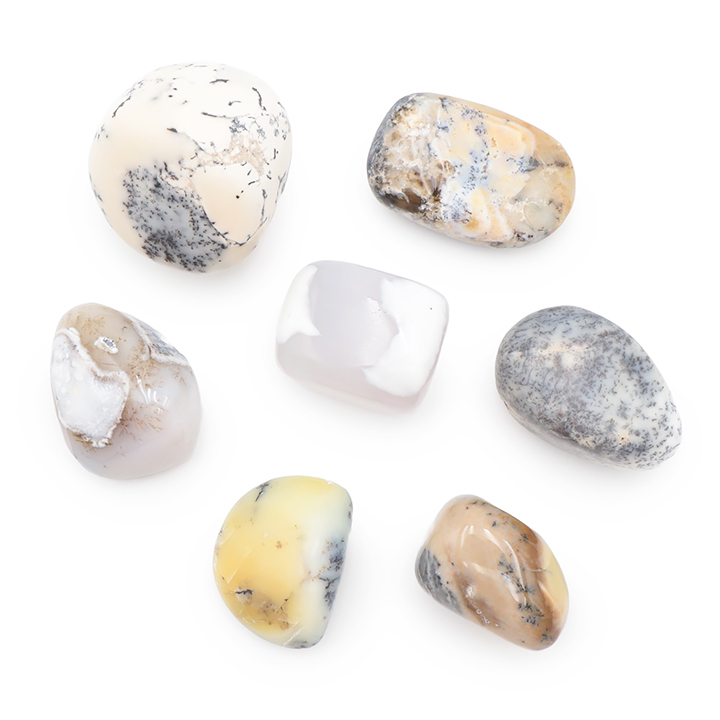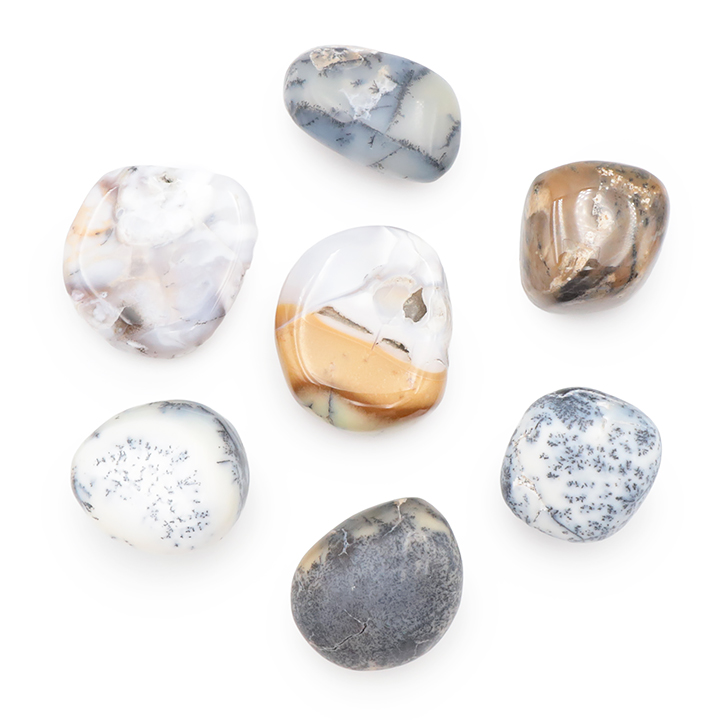 Set forme libere N°3727 calcedonio dendritico A 320g (7 pezzi)