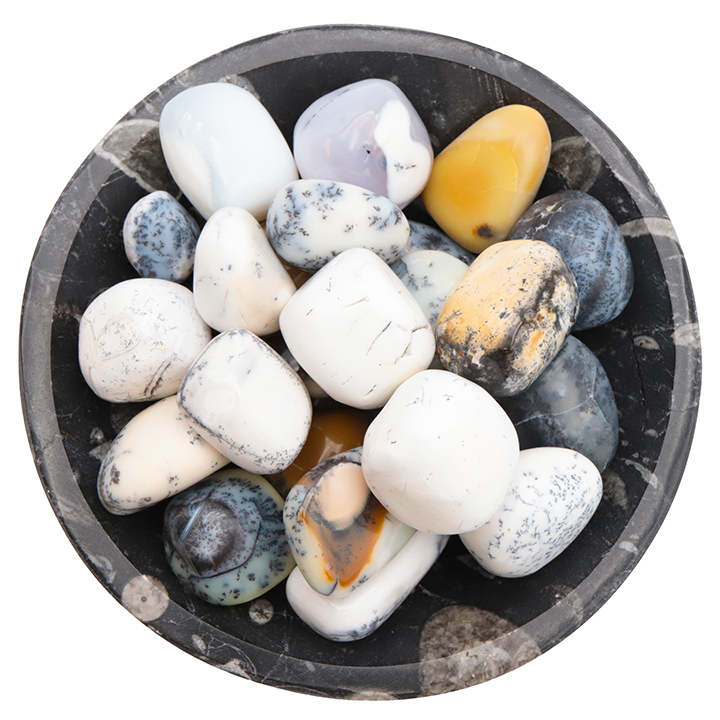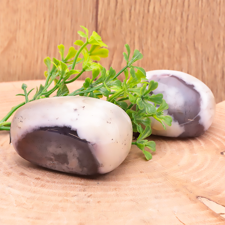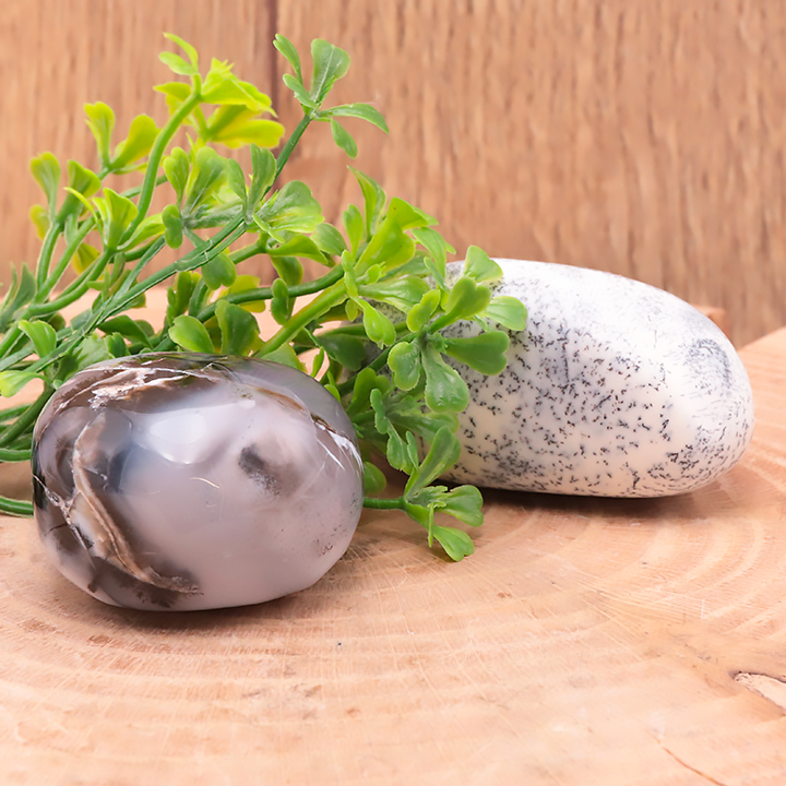 Ciottolo di calcedonio dendritico AB 100 a 125g (1 pezzo)