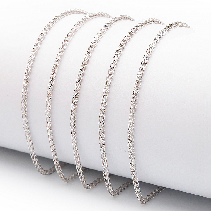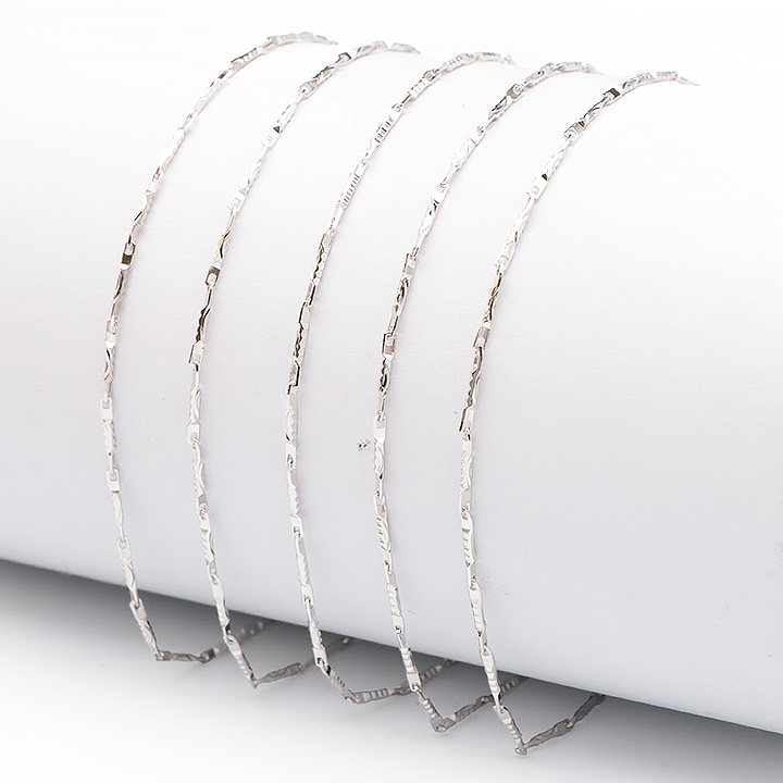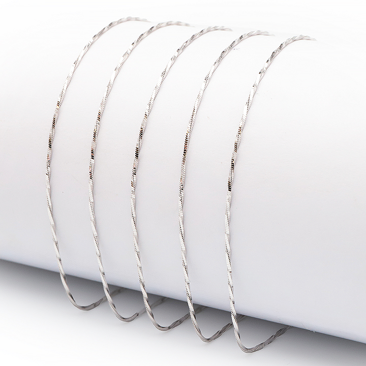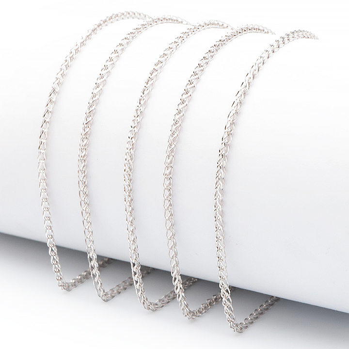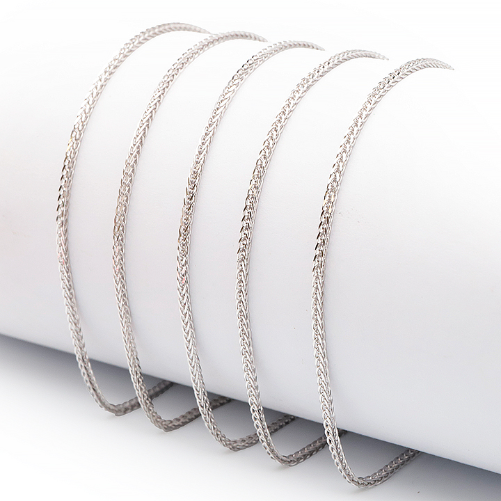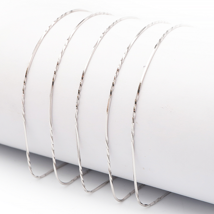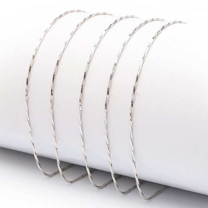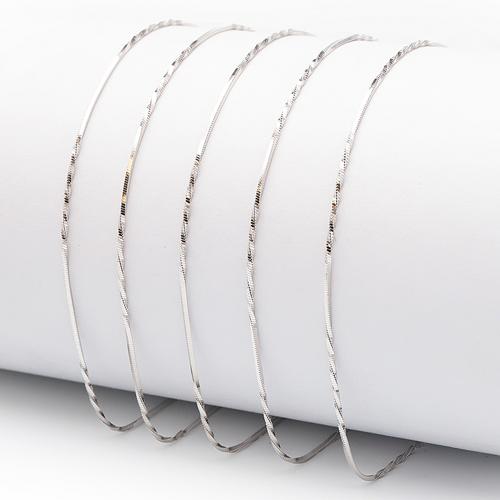 Catena d'argento 925 rodiato 45cm maglia spiga intrecciata incisa 1 mm modello 11 (1 pezzo) set N°1A0924