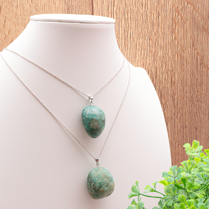Pendente pietra grezza crisocolla Perù AA 30 a 40mm (set 3 pezzi)