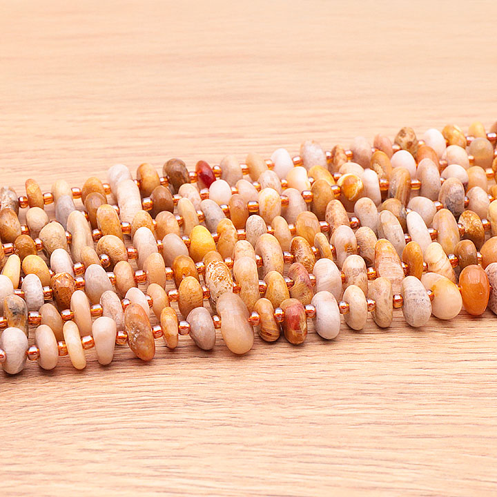 Filo di perle di pietre rotolate 04 x 10mm corallo fossile A