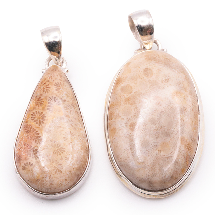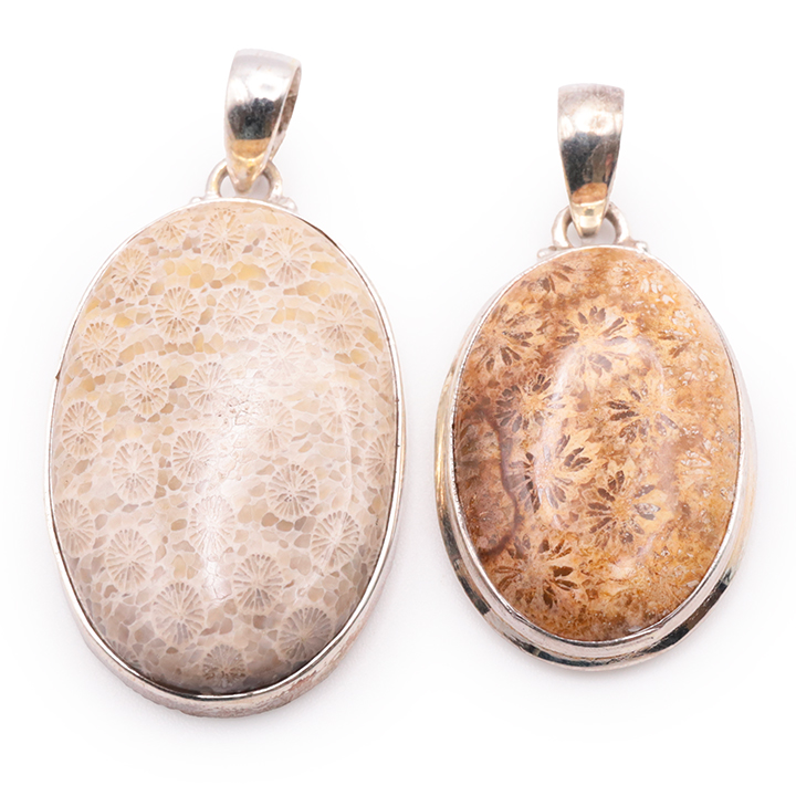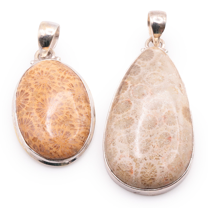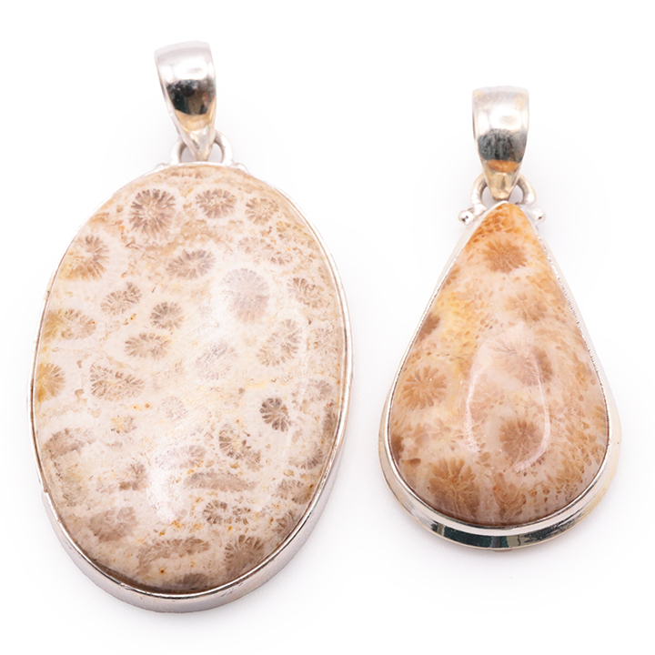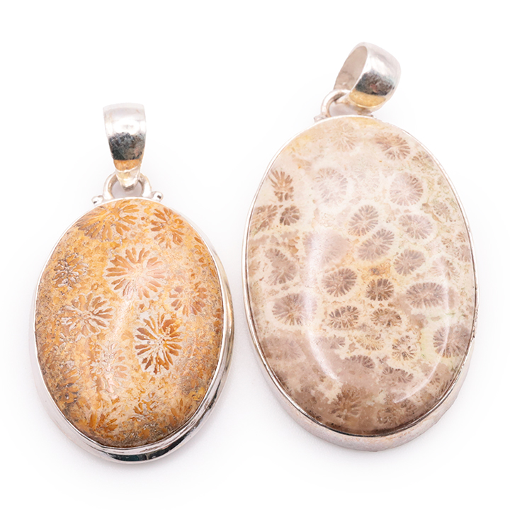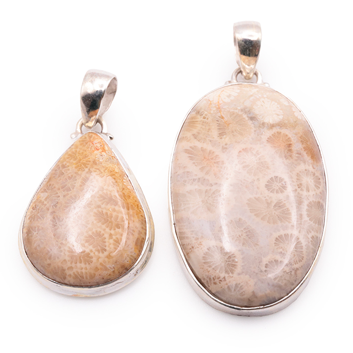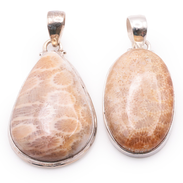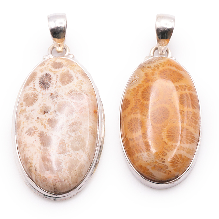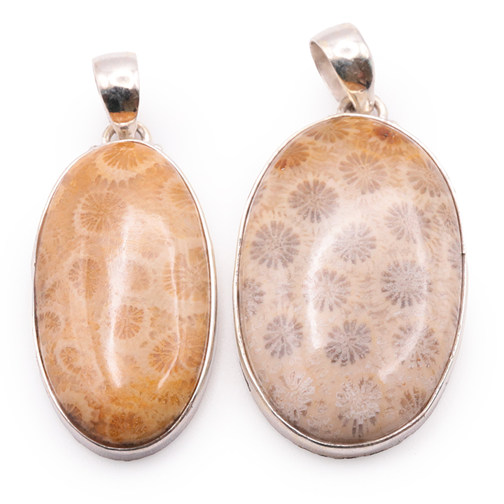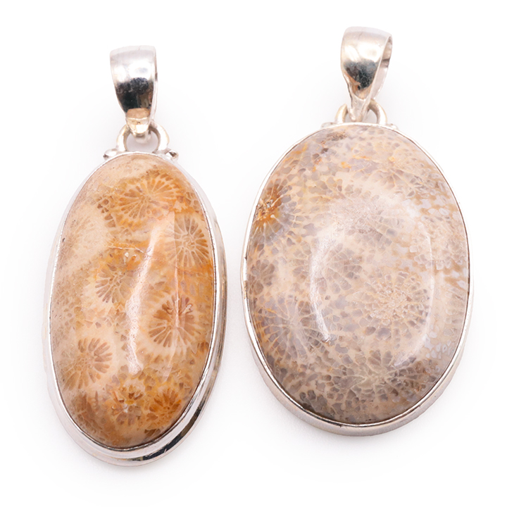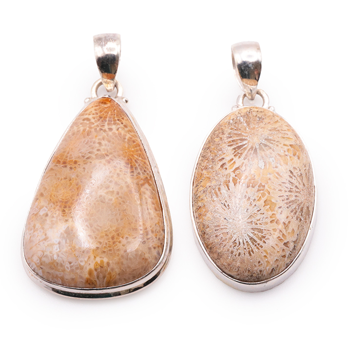 Pendente argento 925 corallo fossile AA N°4794 (1 pezzo) 14,95g