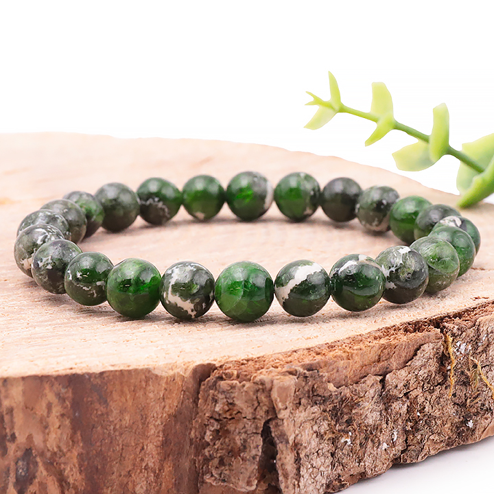 Braccialetto a sfera 08mm diopside verde su matrice AA (08,5-09,5mm)