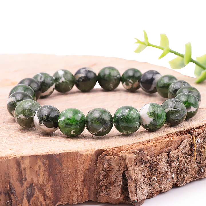 Bracciale sfera 10mm diopside verde su matrice AA (10,5-11,5mm)