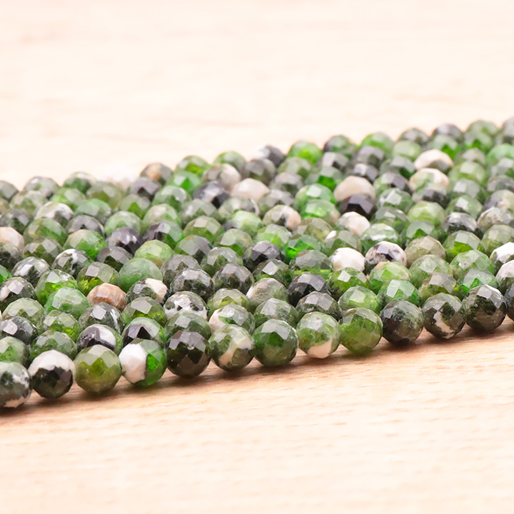 Filo di perle sfaccettate 04mm diopside verde su matrice AA