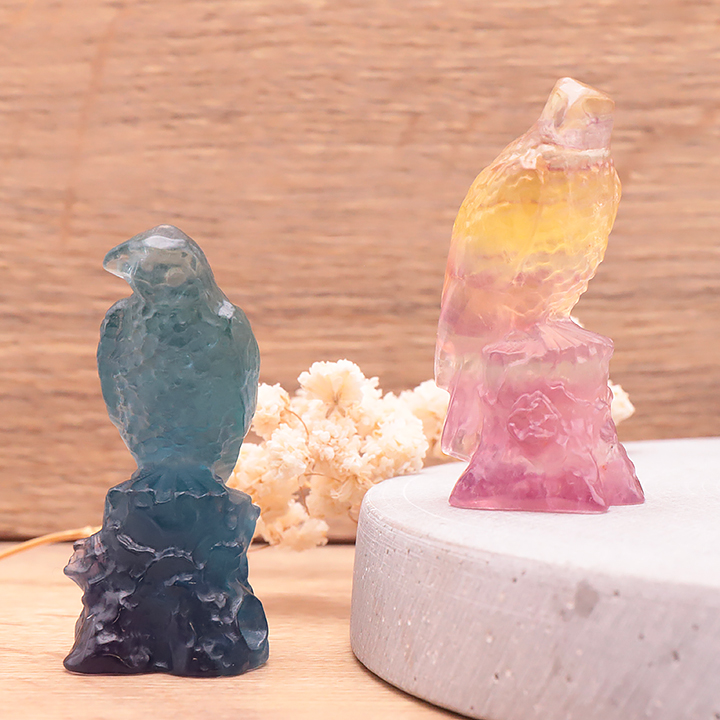 Aquila su base 55mm fluorite multicolore AAA (1 pezzo)