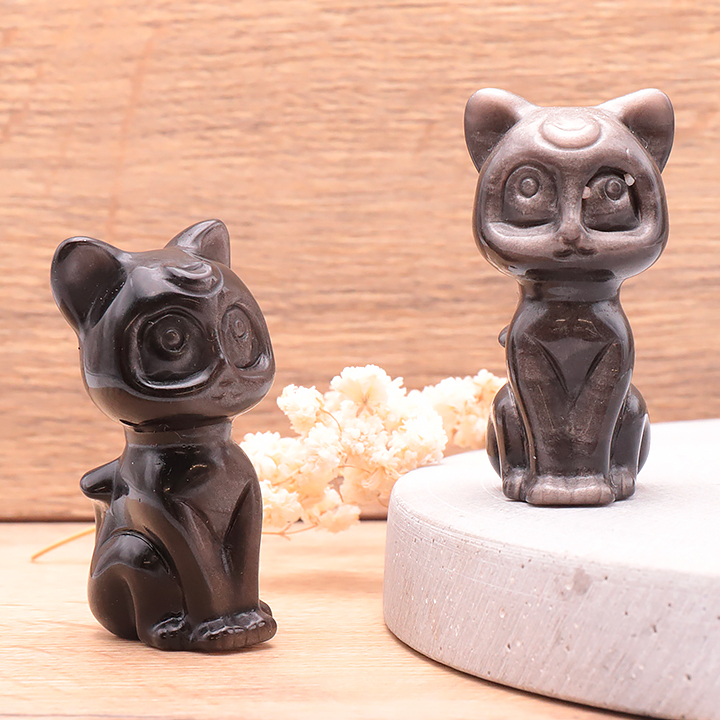 Gatto 60mm ossidiana argentata AA (1 pezzo)