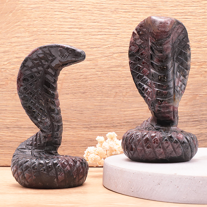 Cobra 110mm granato rosso su astrophyllite A (1 pezzo)