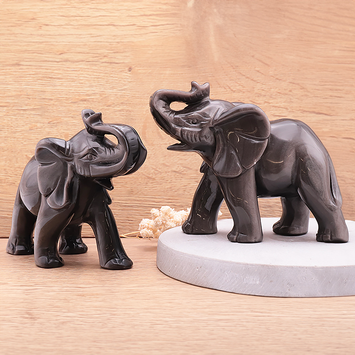 Elefante 110mm ossidiana argentata AAA (1 pezzo)