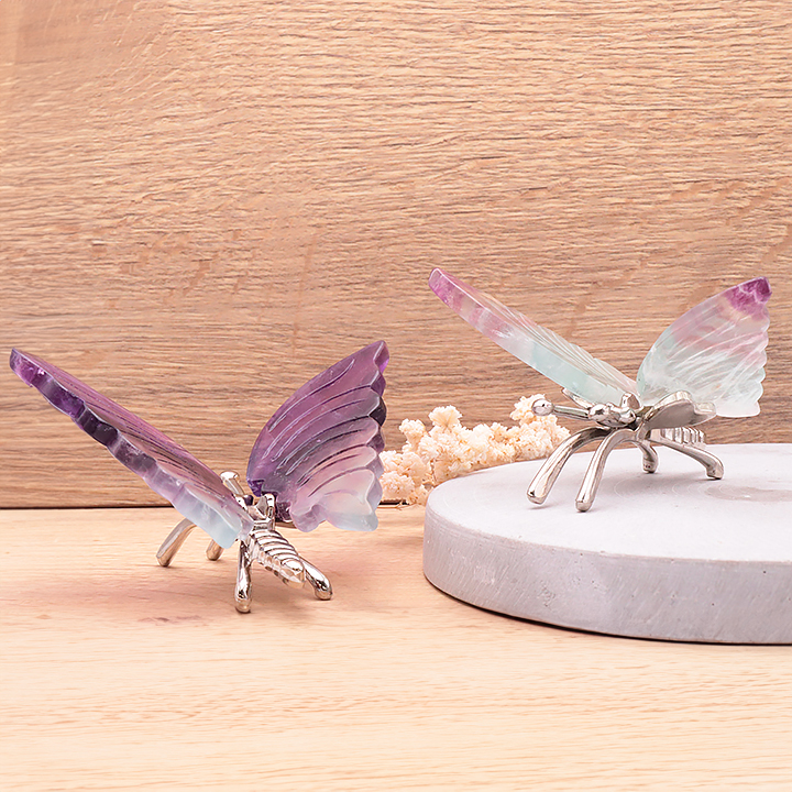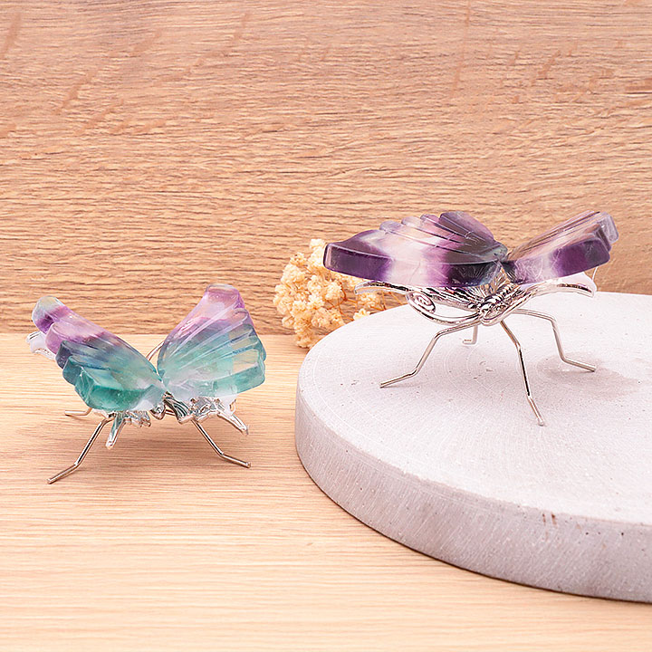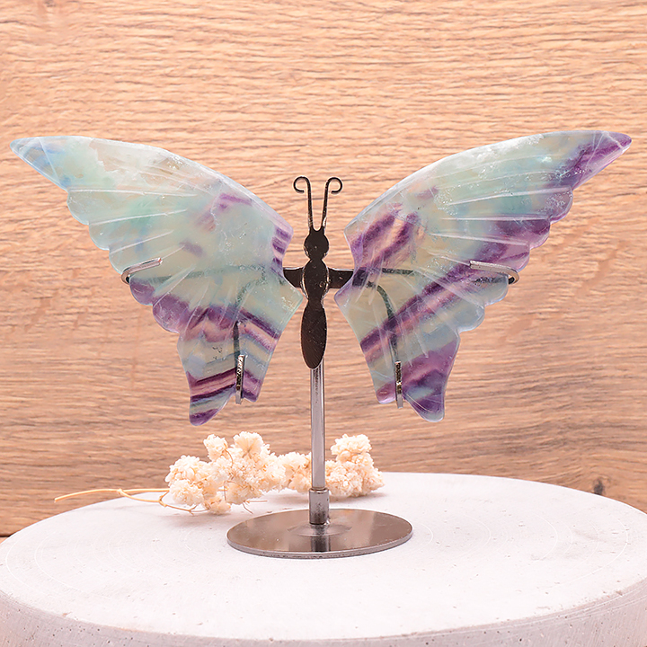 Farfalla con base 120 a 150mm fluorite arcobaleno AA (1 pezzo)