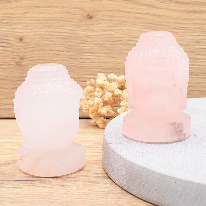 Testa di Buddha indiano 65mm quarzo rosa A (1 set)