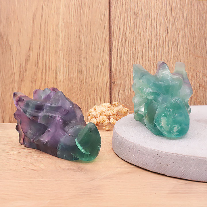 Testa di drago 50mm fluorite arcobaleno AA (1 set)