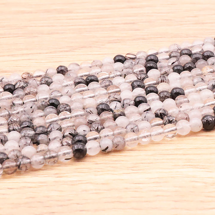Filo di perle 04mm cristallo di rocca tormalina AA