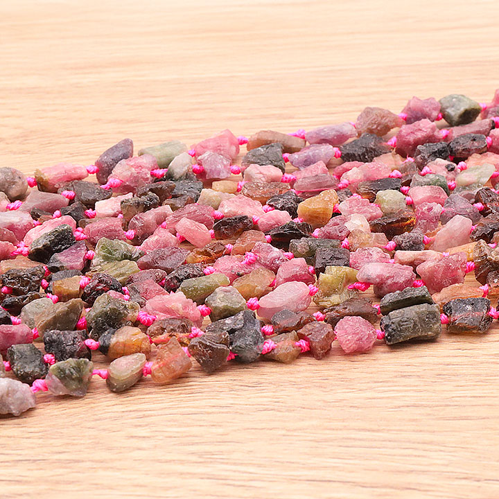 Filo di perle pietre grezze 06 x 14mm tormalina rosa A