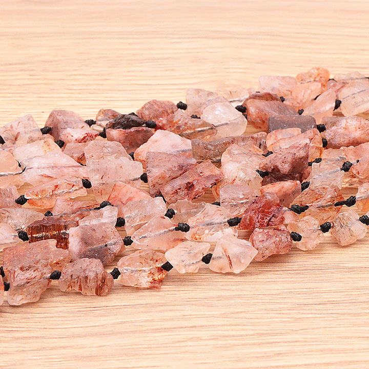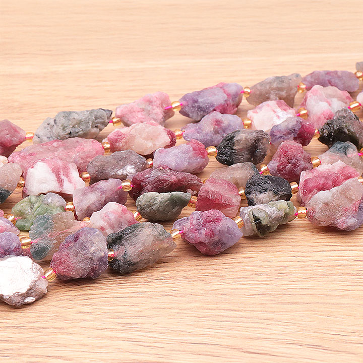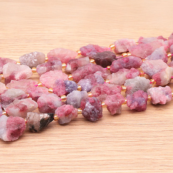 Filo di perle pietre grezze 12 x 20mm tormalina rosa su eudialite AA