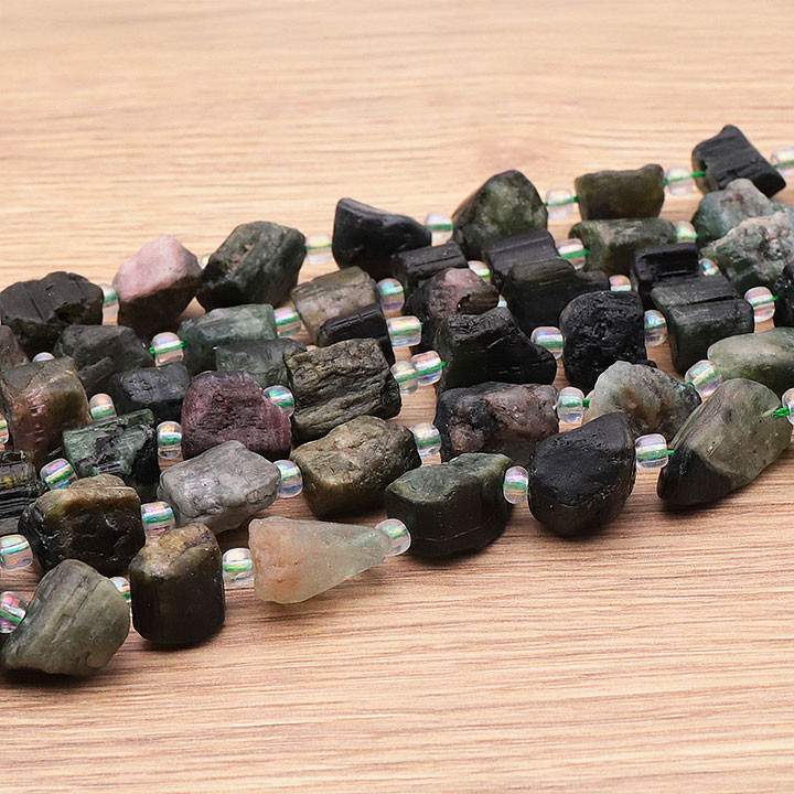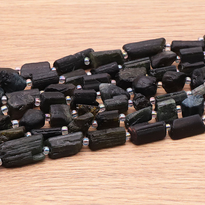 Filo di perle pietre grezze 06 x 15mm tormalina verde cristallizzata A