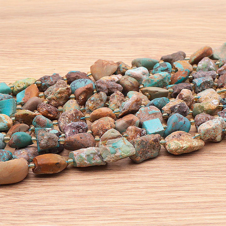 Filo di perle pietre grezze 08 x 15mm turchese Tibet A