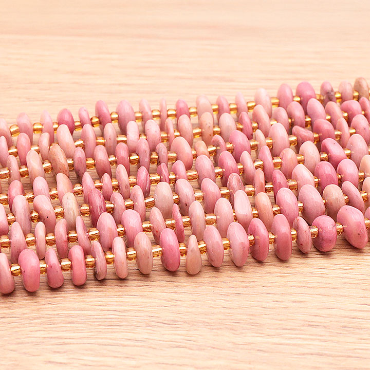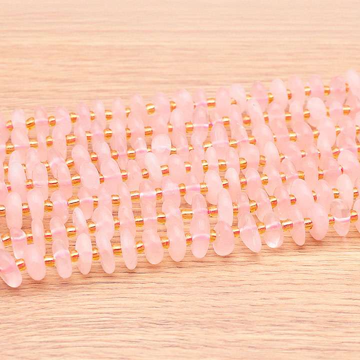 Filo di perle pietre rotolate 04 x 10mm quarzo rosa Sud Africa AA