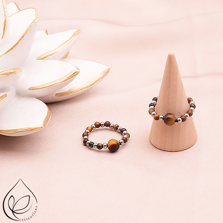 Anello Ondine argentato, ematite, occhio di tigre A