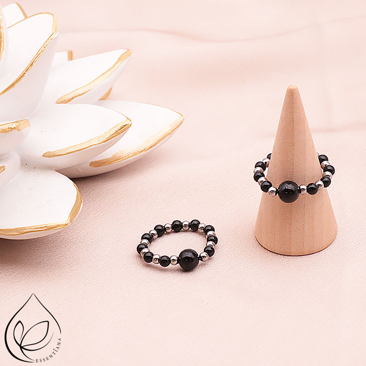 Bague Ondine argentée hématite, onyx A