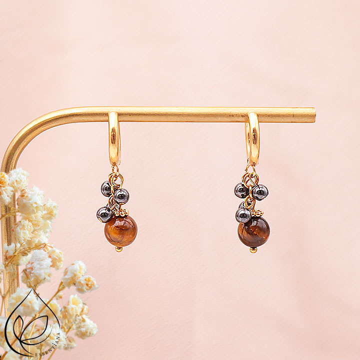 Ornel oro ematite, occhio di tigre orecchino A (1 set)