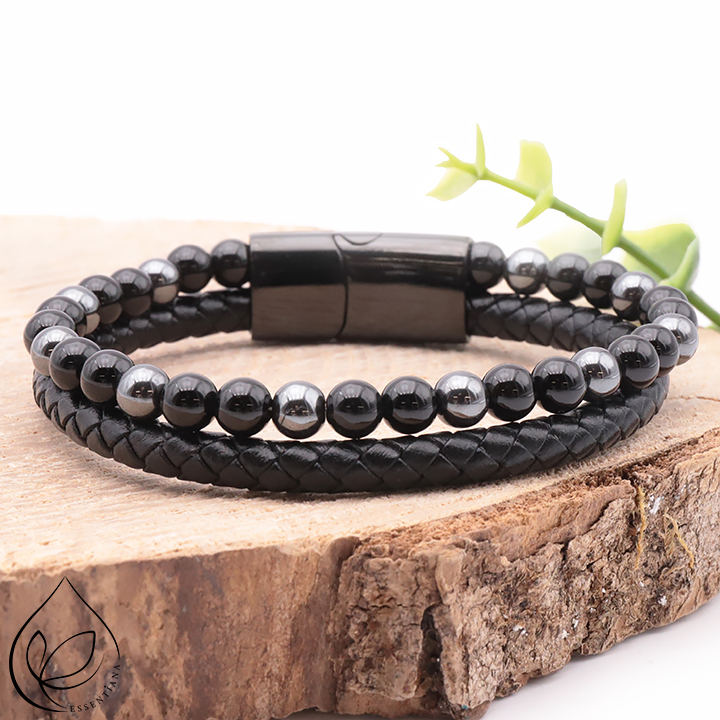 Bracciale Aska pelle nera ematite, onice A