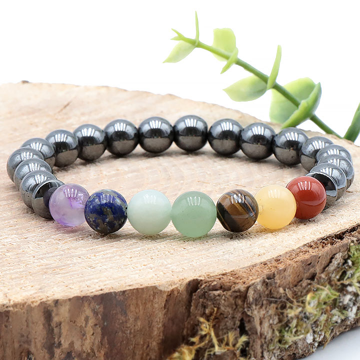 Bracciale sfera 08mm 7 chakras + ematite A