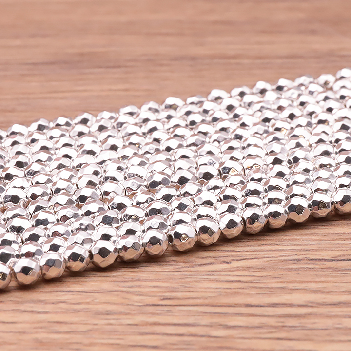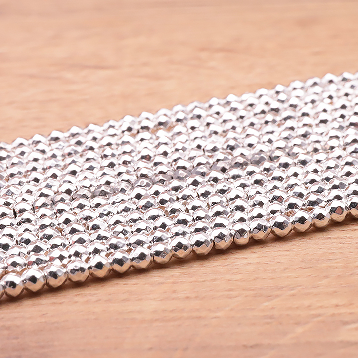 Filo di perle sfaccettate 03mm ematite argentata A trattata