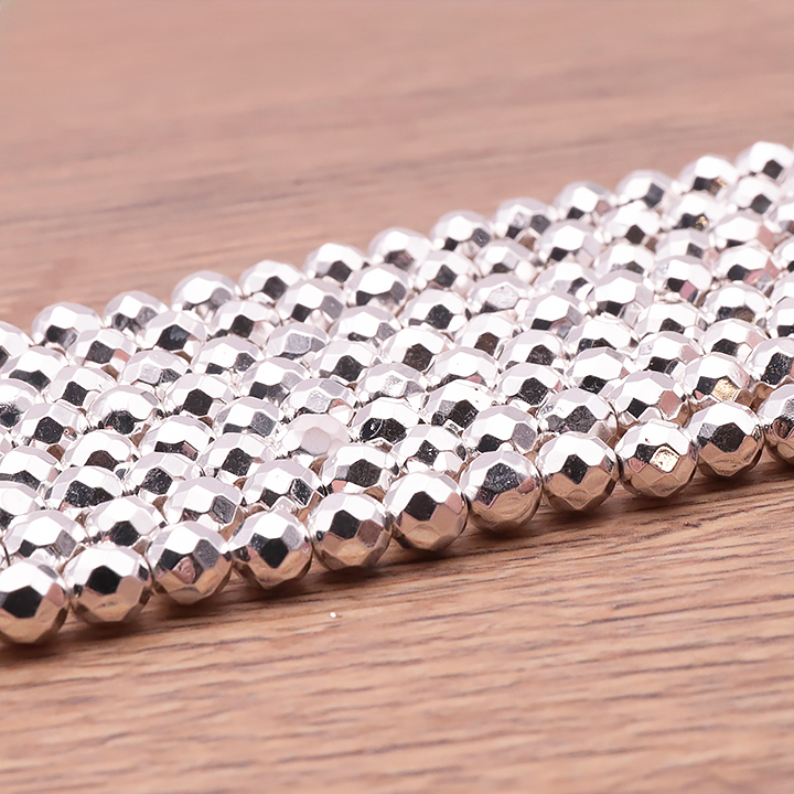 Set di perle sfaccettate 06mm ematite argentata trattata