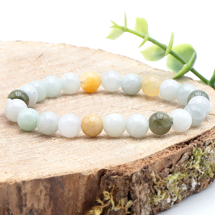 Braccialetti di perle rotonde e perle barocche in giada di Birmania.