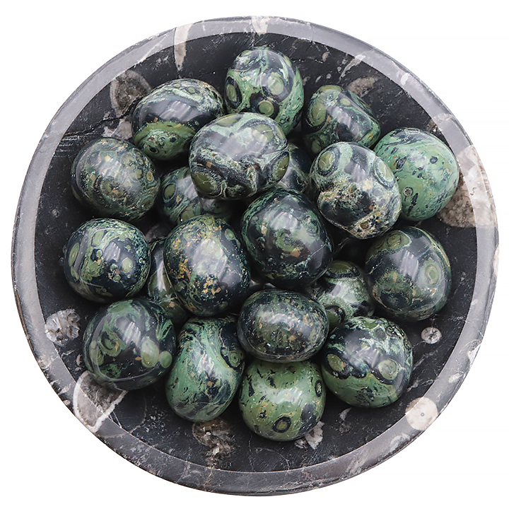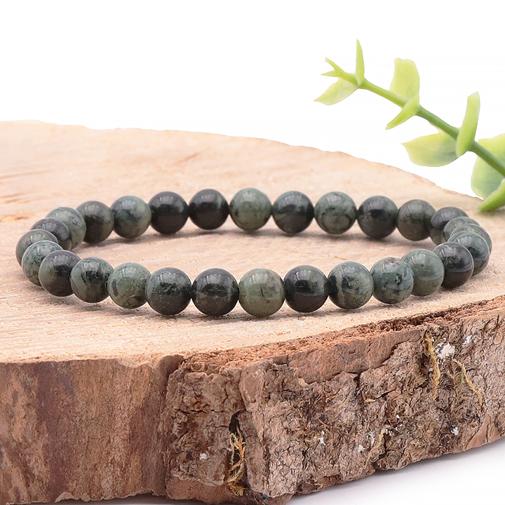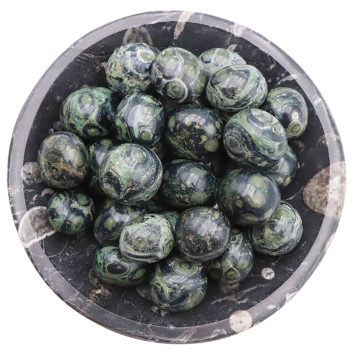 Braccialetti e pendenti in diaspro kambaba. Pietre levigate, uova e sfere di diaspro kambaba.
