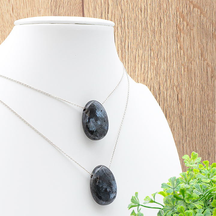 Braccialetti in larvikite. Ciottoli e pietre donut per pendenti di larvikite